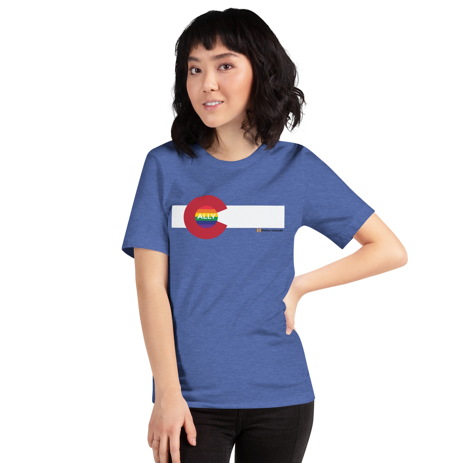 Show your Colorado Pride and your LGBTQ+ pride with this unique Ally shirt that shows off the best of all the world has to offer! Designed by History Colorado Center; Denver, CO